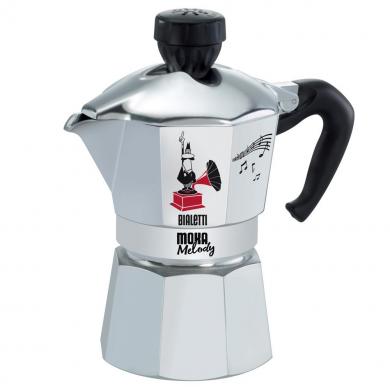 Bialetti Moka Melody, 3 cups - отличное решение для тех, кто не мыслит своего утра без чашечки (или двух) ароматного кофе, приготовленного собственными руками. Изготовленная в Италии компанией, которая по сегодняшний день является символом гейзерных кофеварок, Мока Мелоди рассчитана на приготовление трех чашек классического итальянского напитка.