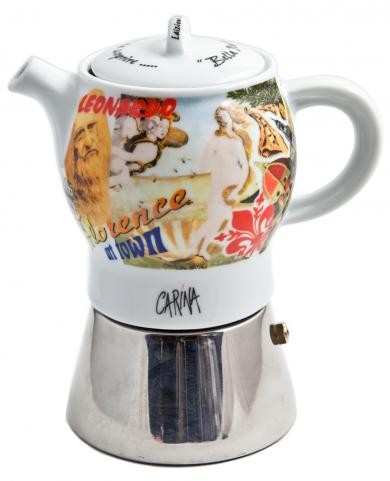 Оформление фарфорового кофейника моки Bella Italia 1 посвящено итальянскому городу искусства Флоренции и знаменитым итальянским художникам. На моке — изображения портрета Леонардо да Винчи, фрагмент картины Сандро Боттичелли "Рождение Венеры", картина Микеланджело "Святое семейство". Также тут присутствуют знаменитые памятники архитектуры и герб Флоренции в виде геральдической лилии.
