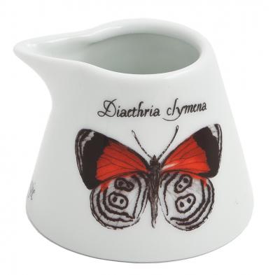 Оригинальный сливочник dAncap Magie — это практичный и, одновременно, декоративный атрибут, который должен присутствовать на любом столе. Он украшен роскошной бабочкой Diaethria Clymena, которая изысканно выглядит на белоснежном фарфоре. Аккуратный носик, устойчивая форма — практические плюсы, оригинальность — в отсутствии ручки.
