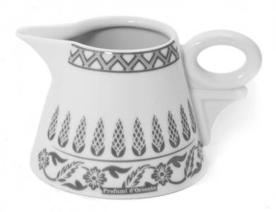 Элегантный молочник оформлен в стиле коллекции Profumi dOriente и является отличным к ней дополнением. Дымчатые восточные узоры, нанесённые на молочник, изящно и выигрышно выглядят на белоснежном фарфоре.