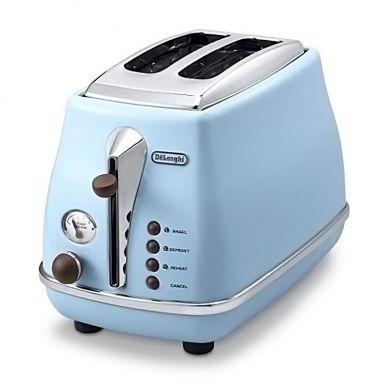 Тостер в металлическом лазурном корпусе DeLonghi Icona Vintage CTOV 2003.Azur предназначен для приготовления тостов разной степени прожарки, подогрева и размораживания хлеба.