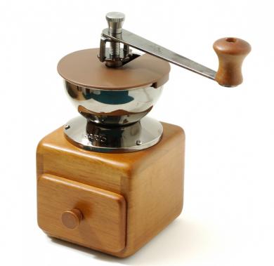 Hario Small Coffee Grinder MM-2 – ручная кофемолка в деревянном корпусе, оснащенная керамическими жерновами. Ретро-дизайн сочетает в себе оригинальную кубическую форму корпуса, бункер для кофейных зёрен и съёмную ручку из полированной стали .