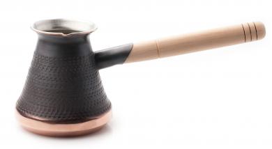 Красивая медная турка “Ереван” для приготовления утреннего кофе и отличного настроения на весь день! Удобная деревянная ручка не позволит Вам обжечься. Изготавливается турка мастерами Армении, из листа чистой меди, толщиной от 1 мм. Внутри покрывается тонким напылением пищевого олова толщиной 9-12 мкм. Медная турка с чеканкой, подходит для приготовления кофе на электрических и газовых плитах, а так же других нагревающих поверхностях, кроме индукционных.