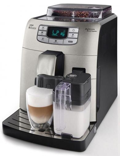 Philips Saeco Intelia One Touch Cappuccino Metal станет украшением любой кухни или офиса, поможет готовить кофейные напитки на высоком уровне не требуя приложения усилий, даст наслаждаться любимым кофе в любое время!
