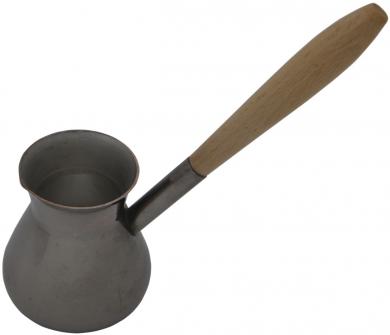 Деревянная ручка джезвы расположена под достаточно необычным углом. Преимущество этого — в возможности поставить несколько турок рядом, для более эргономичного использования места, если Вы готовите кофе на песке, а песочница — достаточно маленького размера.