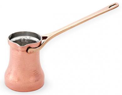 - Медная турка с оловянным покрытием изнутри. Удобная длинная ручка, "правильная" форма.